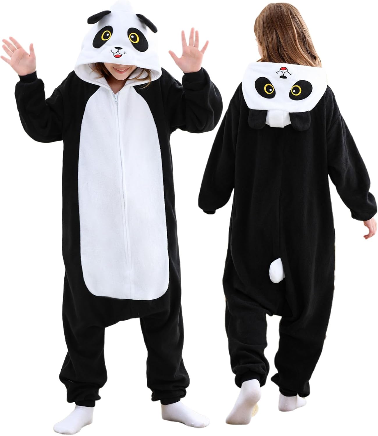 Kids Animal Onesie Pajamas Fleece Costume for Halloween, Cute Sleepwear Unisex Jumpsuit with Hood for Ages 2-12 Years