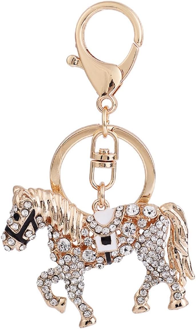 Gold Horse Keychain for Women, Ladies' Running Horse Keychain with Rhinestone Design, Cute Summer Key Ring, Punk Animal Keyring Accessory