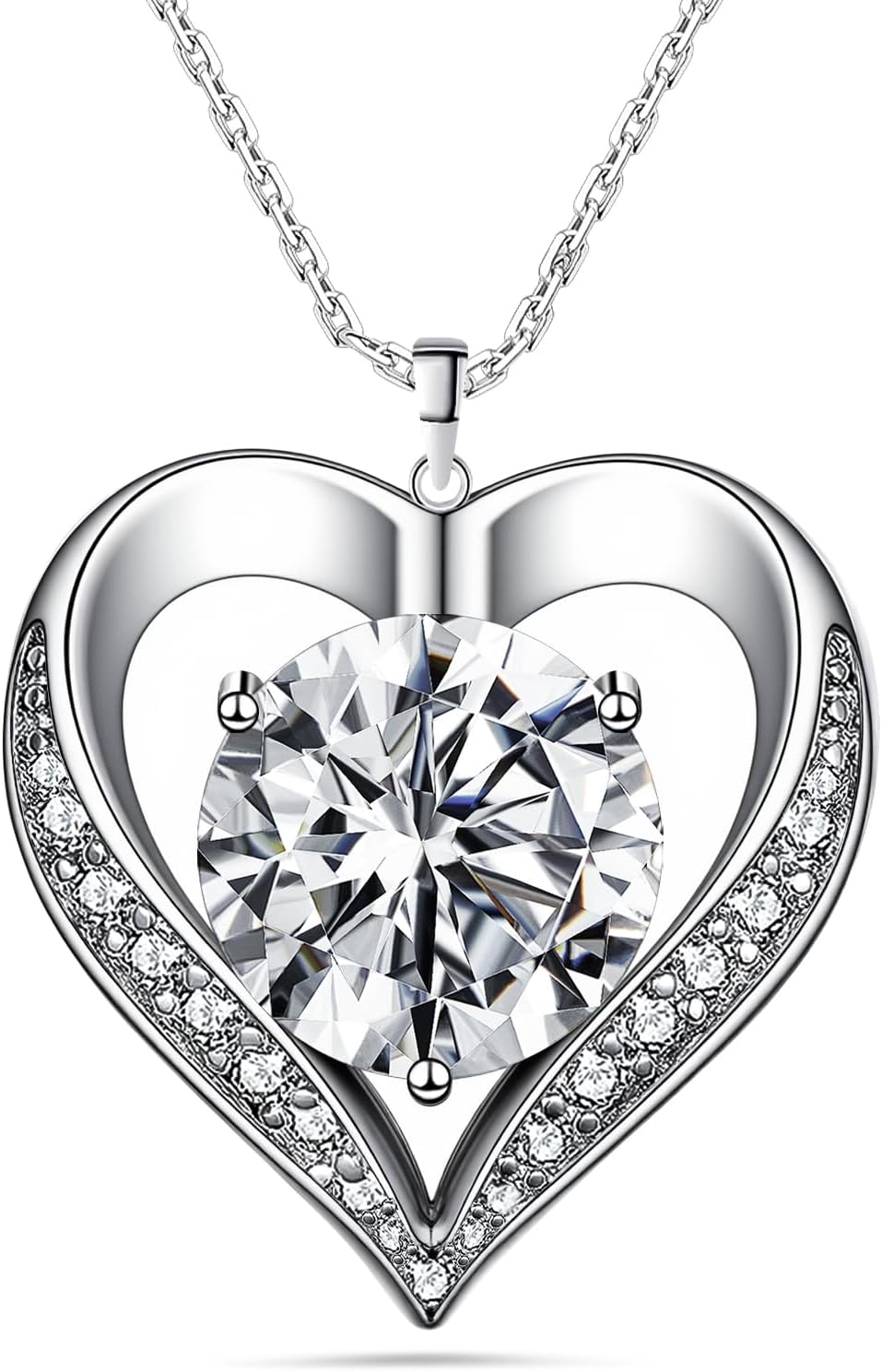 Moissanite Necklace for Women, 925 Sterling Silver Heart Necklace, Hypoallergenic Diamond Pendant Necklaces Jewelry Anniversary Brithday Gifts for Women Wife Girlfriend