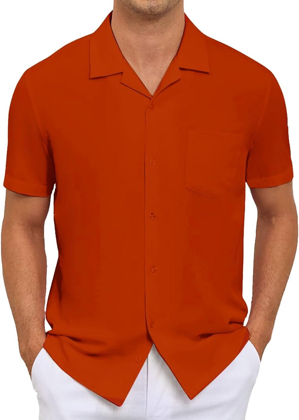 Men's Short Sleeve Button Down Shirt Cuban Collar Anti-Wrinkle Shirt Casual Summer Beach Shirt
