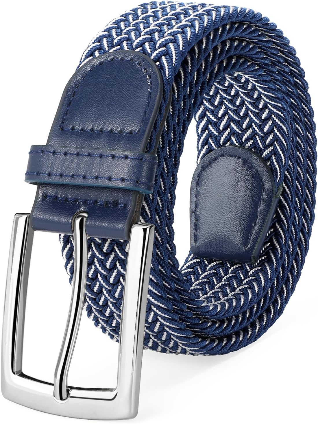 SUOSDEY Elastic Fabric Braided Belts for Men, Stretch Woven Belts for Golf Casual Jeans Shorts
