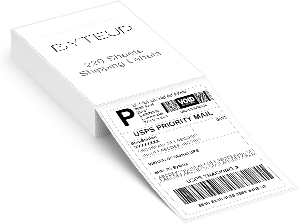 4x6 Direct Thermal Shipping Labels, 220 Sheets Fanfold, Barcode & Shipping Label Paper, Permanent Adhesive, Smudge Resistant, Compatible with Most Direct Thermal Printers (Not for Laser/Inkjet/Dymo)