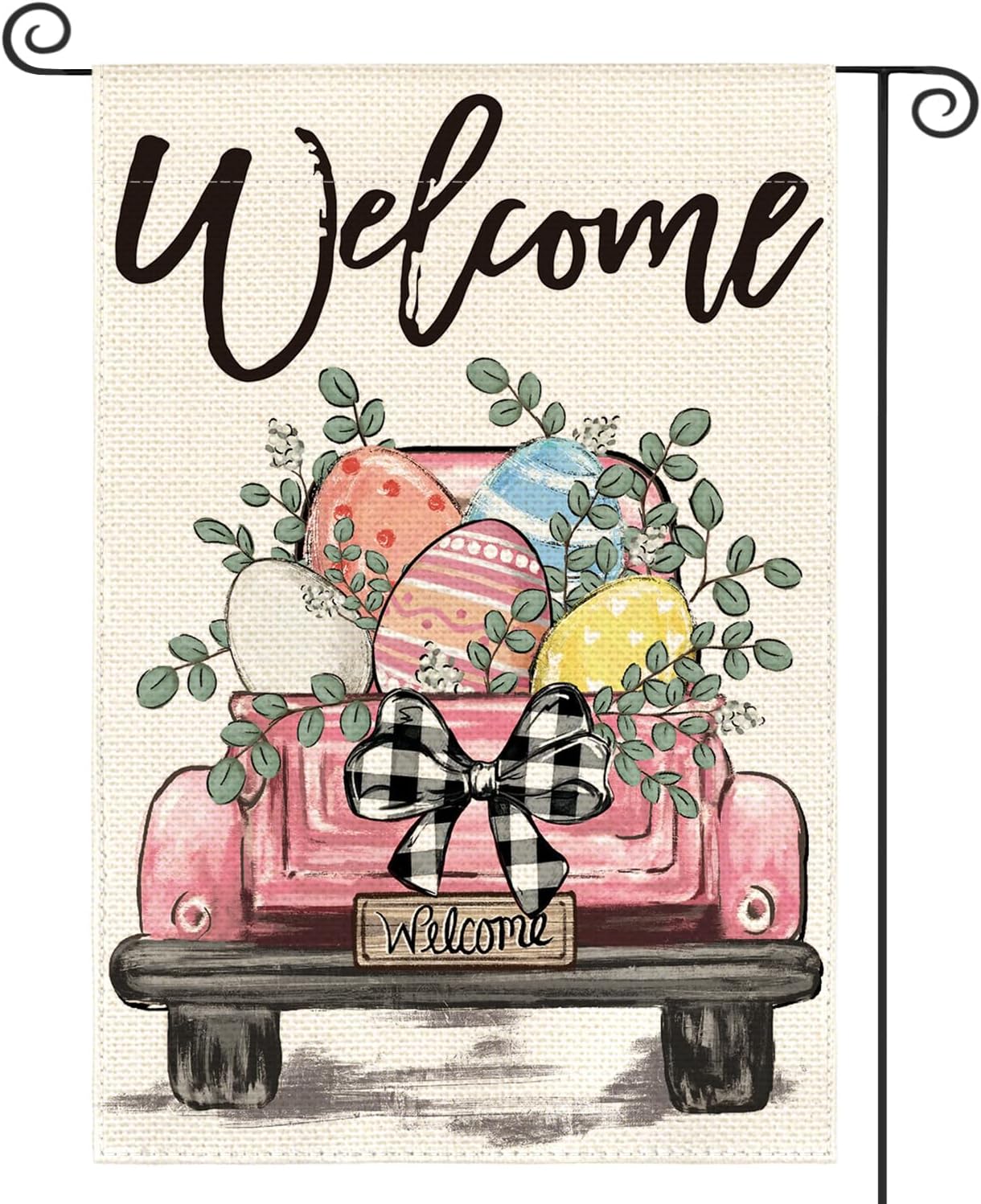 AVOIN colorlife Welcome Easter Eggs Truck Garden Flag 12x18 Inch Double Sided, Rustic Farmhouse Yard Outdoor Decoration