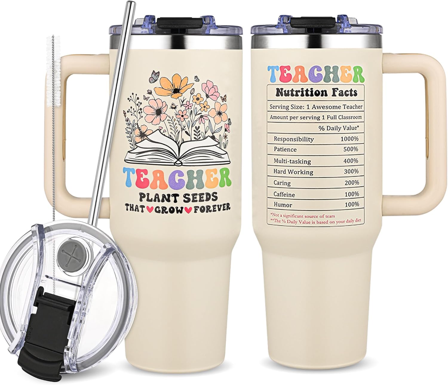 - Thoughtful Teacher Appreciation Gift: Honor educators with this 40 oz tumbler featuring a floral design and "Teacher That Plants Seeds That Grow Forever" print, perfect for Teacher Appreciation Week or end-of-year gifts.