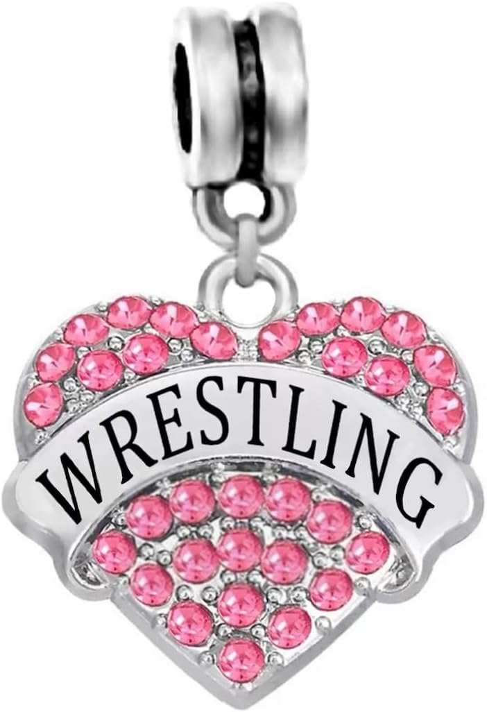 LaBenie Dangle Pink Crystal Wrestling Charm Bead