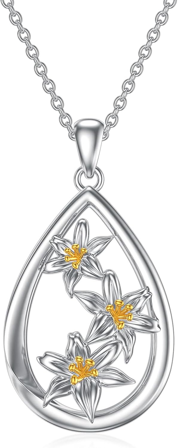 Teardrop Lily Necklace 925 Sterling Silver May Birth Flower Pendant Floral Birthday Jewelry Gift for Women