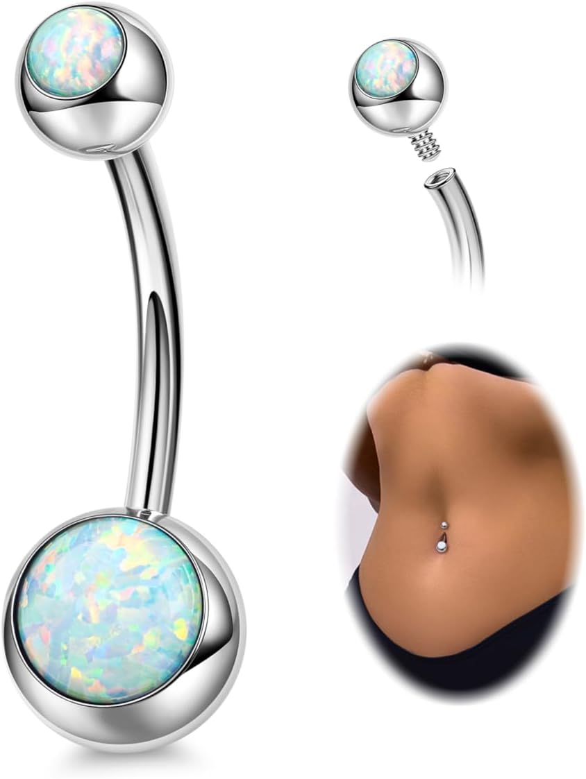 REVOLIA 14G F136 Titanium Opal Belly Button Rings for Women Hypoallergenic Belly Rings Internally Threaded Barbell Navel Rings Body Piercing Jewelry 6-16MM
