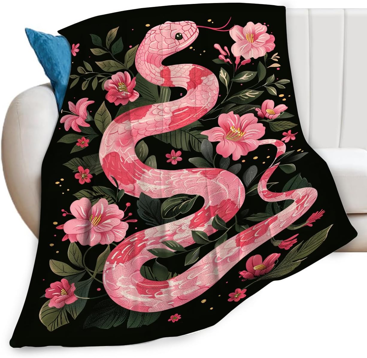 Snake Throw Blanket Pink Floral Animal Print Blankets Gifts Couch Sofa Bed Stuff Decor Soft Cozy Lightweight Fleece Plush Flannel Bedding for Lover Women Girls Adults 40"x50"