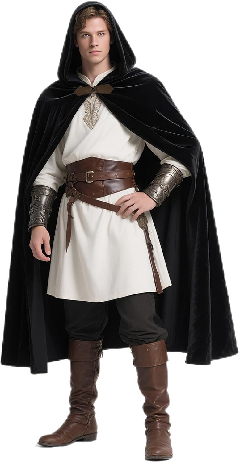 Medieval Cloak with Hood Men Renaissance Costume Accessories Halloween Cosplay Velvet Cloak Hood