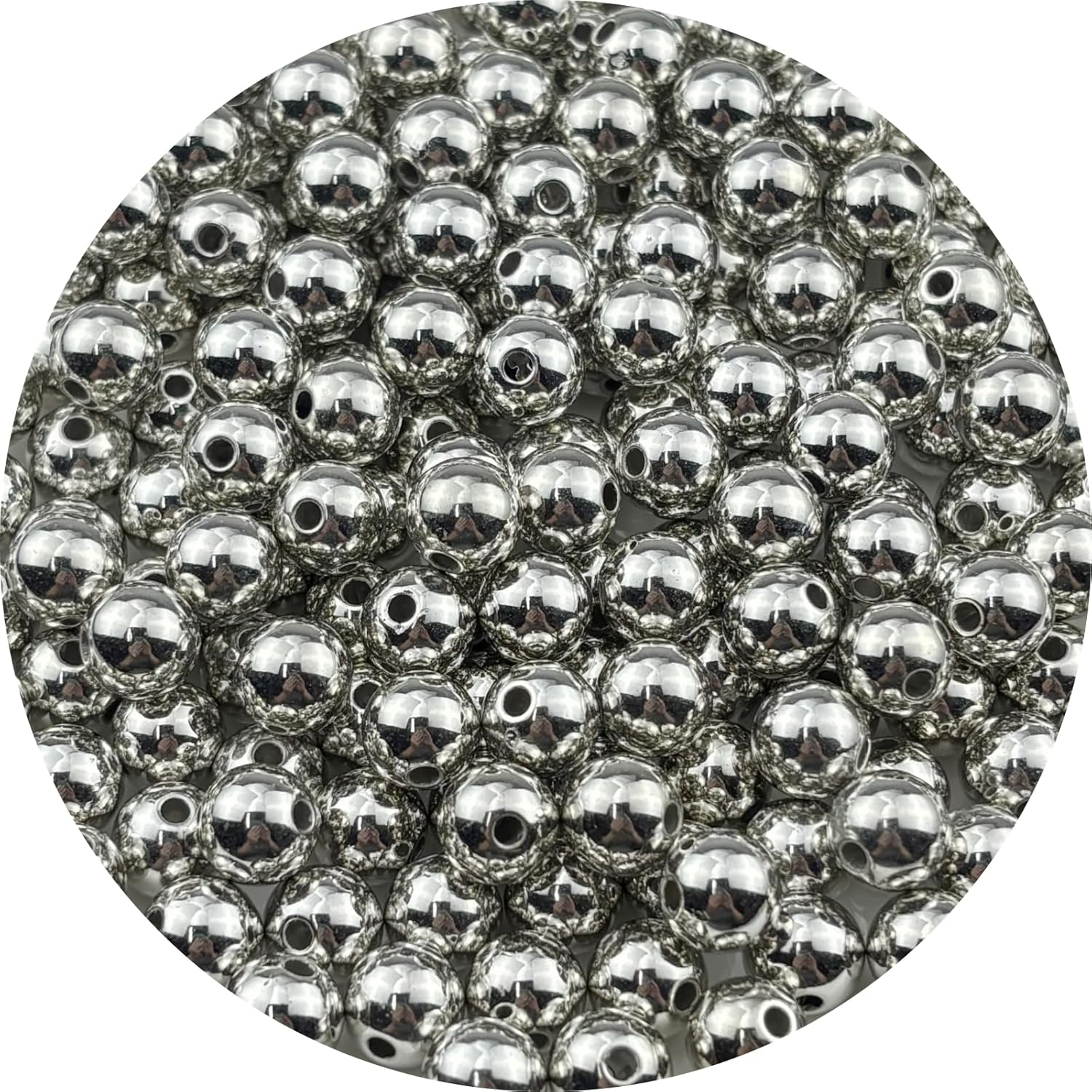 200pcs Silver Plated Round Beads for Craft 10mm Smooth Round Ball Spacer Beads for Jewelry Making DIY Necklaces Bracelets Earrings Decoration