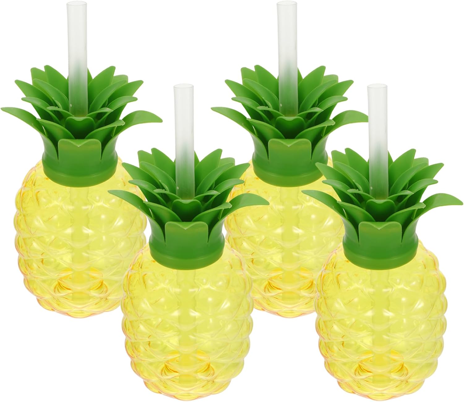 4Pcs Pineapple Shaped Plastic Cups Reusable Drinking Mugs with Lids & Straws for Hawaii Luau Birthdays Party Supplies Pineapple Cups with Straws