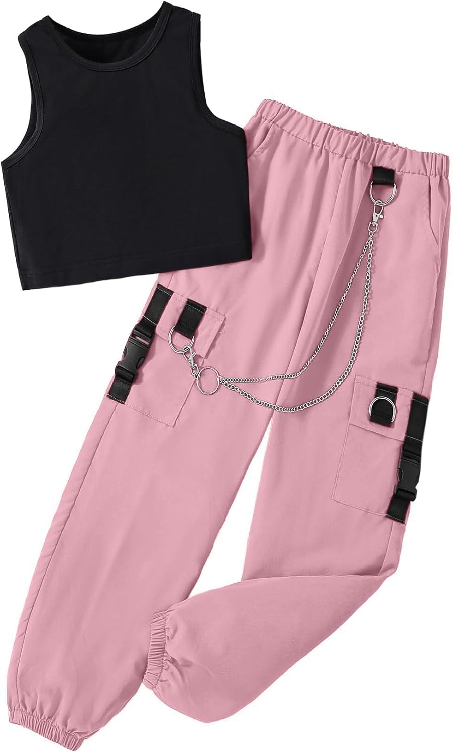 Girls' 2 Piece Outfits Sleeveless Crop Tank Tops and Cargo Pants Clothing Set