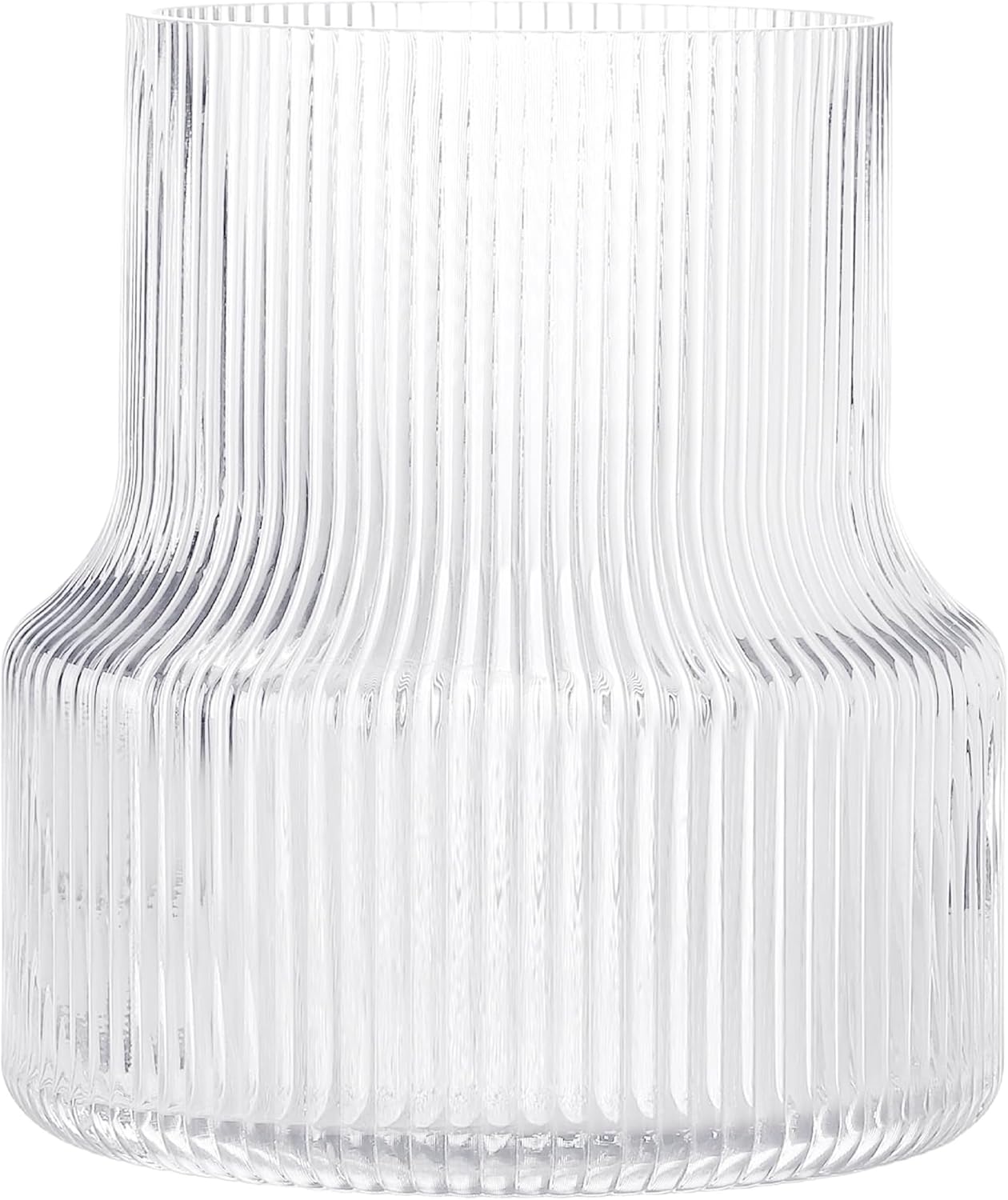 Glass Vase - Fluted, Ribbed, Decorative for Centerpieces, Modern for Living Room, Table, Entryway, Desk, Shelf, Wedding, Office - 7.5 Inches