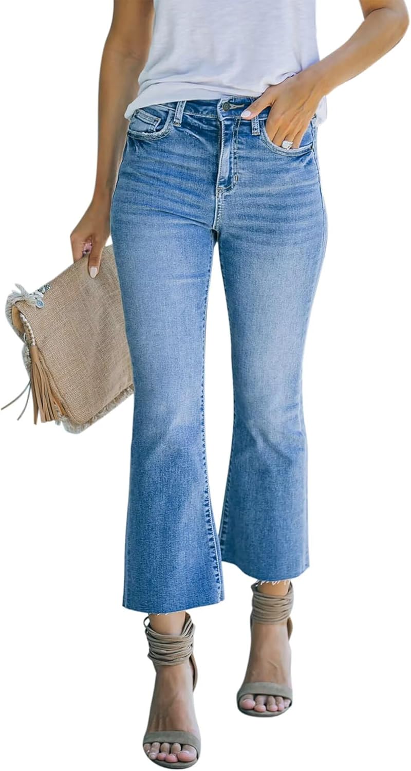 Women's High Waisted Crop Flare Jeans for Women Cropped Bell Bottom Jeans for Women Bootcut Denim Pants with Live Hem