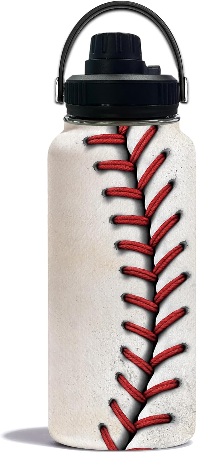 Baseball Water Bottle 32oz, Sport Travel Stainless Steel Tumbler With Lid, Double Wall Vacuum Insulated Coffee Cup Travel Mug, Fathers Day Birthday Baseball Gift For Boys Dad Husband