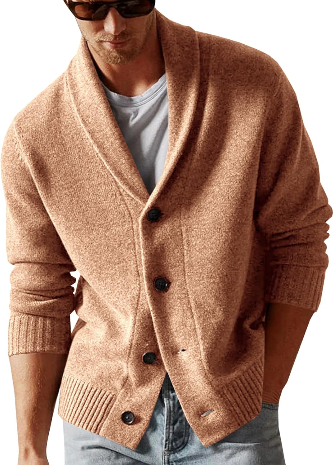 Runcati Mens Shawl Collar Cardigan Sweater Casual Button Down Winter Ribbed Chunky Knitted Sweaters