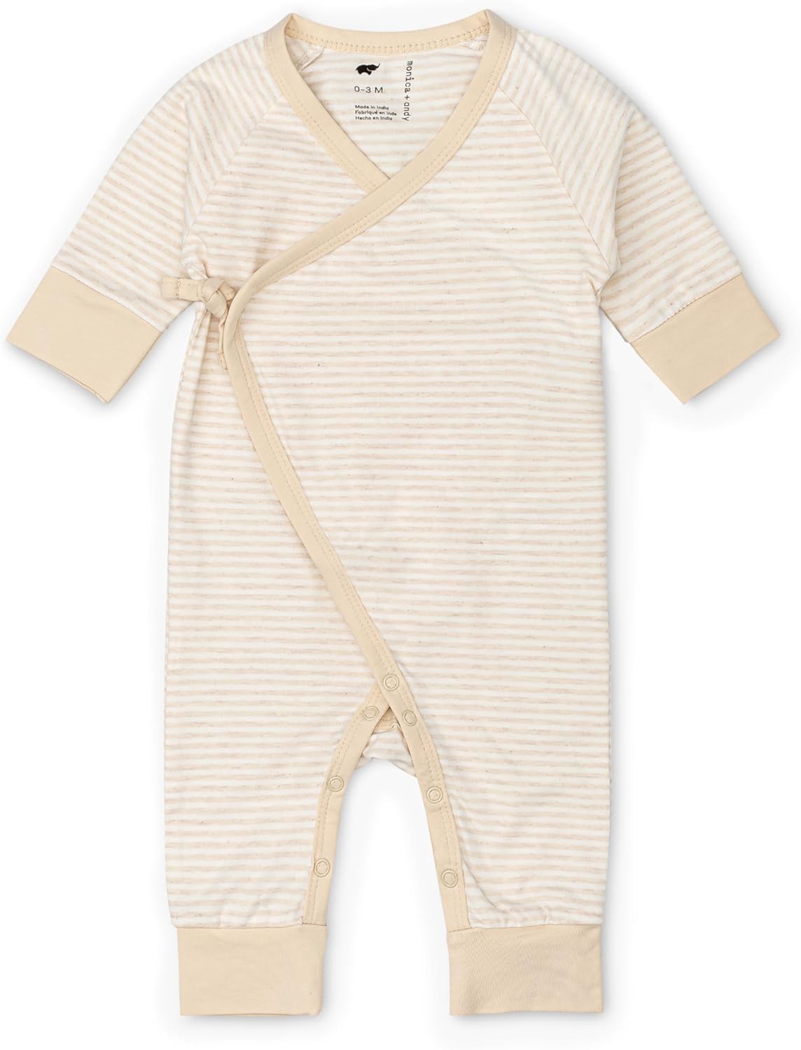 monica + andy Kimono Tie Long Sleeve One Piece, 100% Organic Baby Clothes for Girls & Boys, Preemie, Newborn & Infant