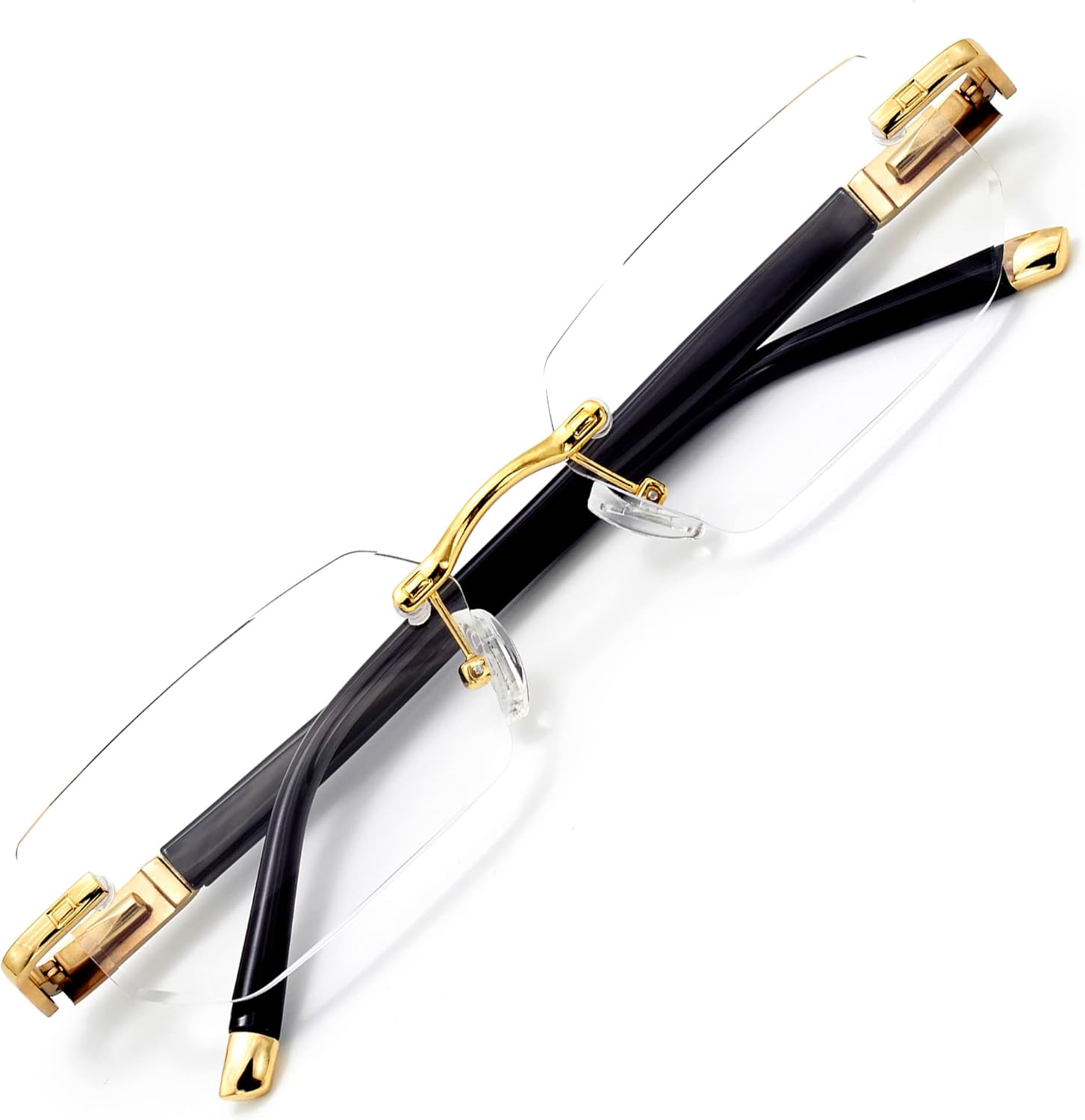 Rimless Reading Glasses, Spring Hinge Readers, Diamond Cut Edge Design Blue Light Glasses
