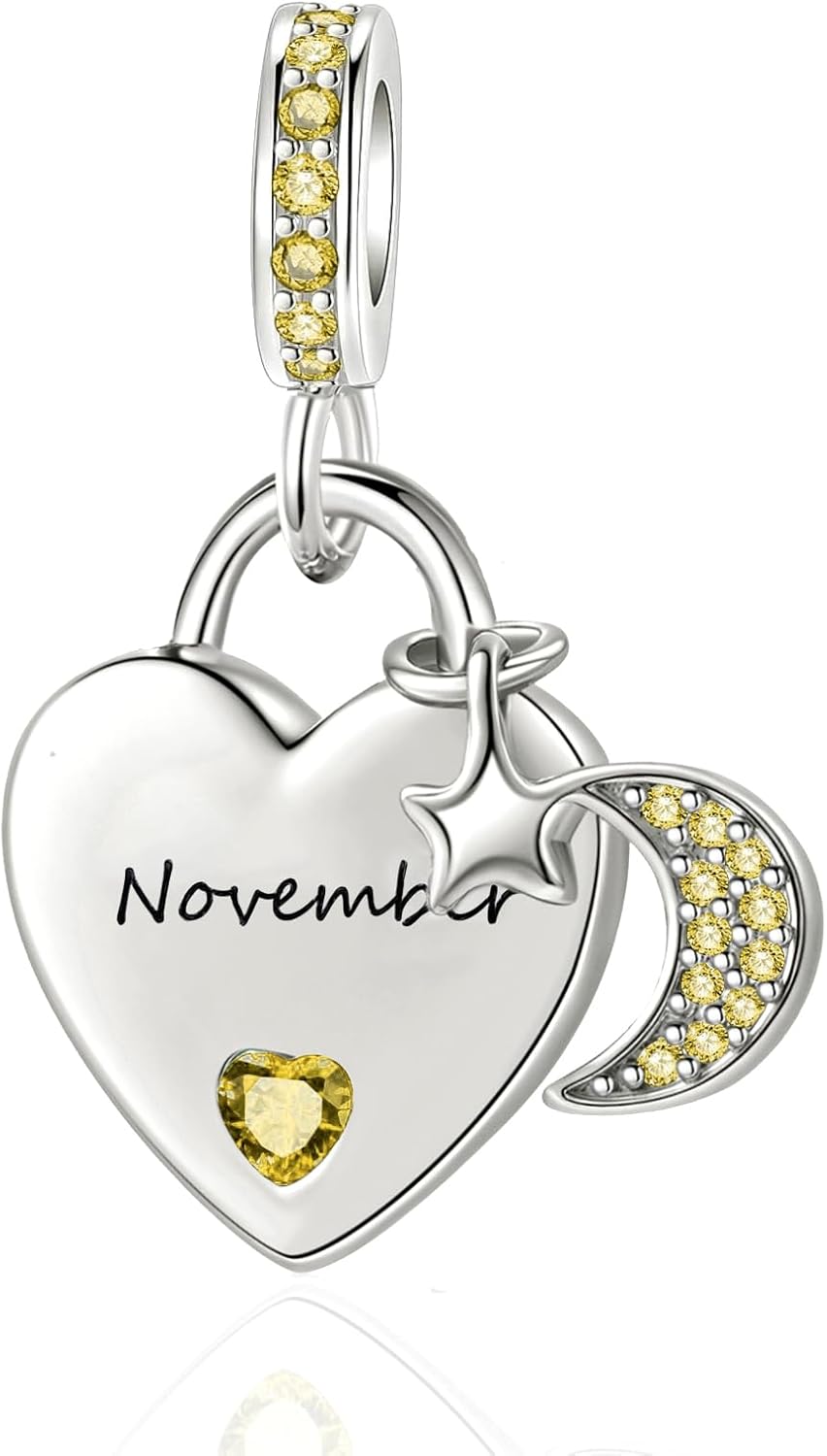 12 Months Birthstone Heart Charm Moon and Star Pendant Bead Compatible with Pandora Bracelet Women