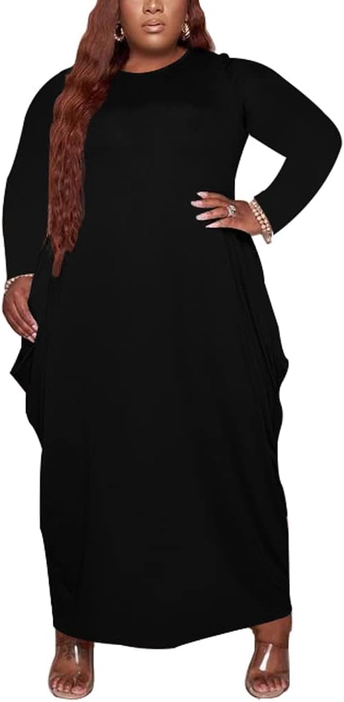 Women's Plus Size Casual Maxi Dresses Short Sleeve Loose Beach Dress Sundress with Pockets
