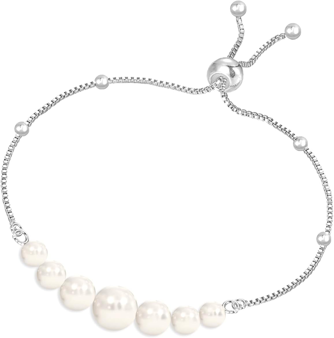 LeCalla Pearl Bracelets for Women in 925 Sterling Silver & 14K Gold-Plated Silver | Adjustable Pearl Bolo Bracelets | Handmade Sliding Chain Beaded Bracelet Jewelry Gifts for all Occasions