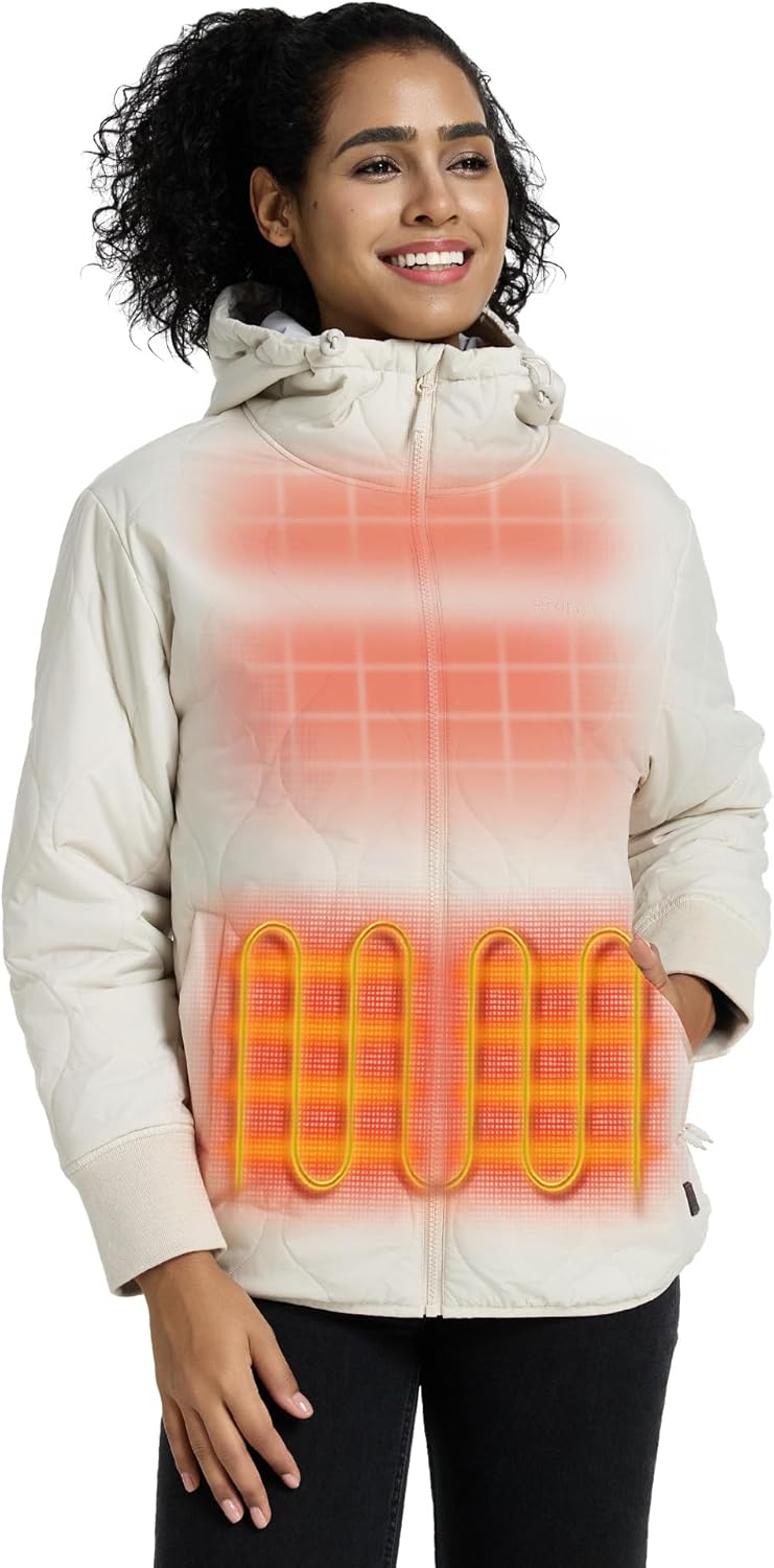 ORORO Women's Heated Quilted Jacket with USB-C Rechargeable Battery, Lightweight Quilted Heated Coat with Hood