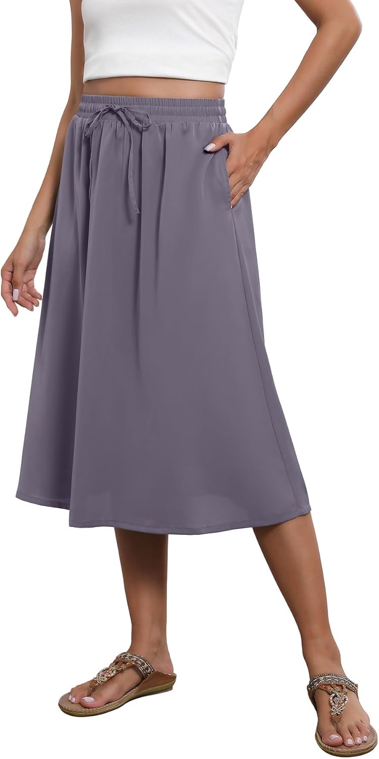 Flowy Skirt Elastic High Waist A-Line Skirt with Pockets Bohemia Cover-up for Women 2026 Trendy(S-2XL)