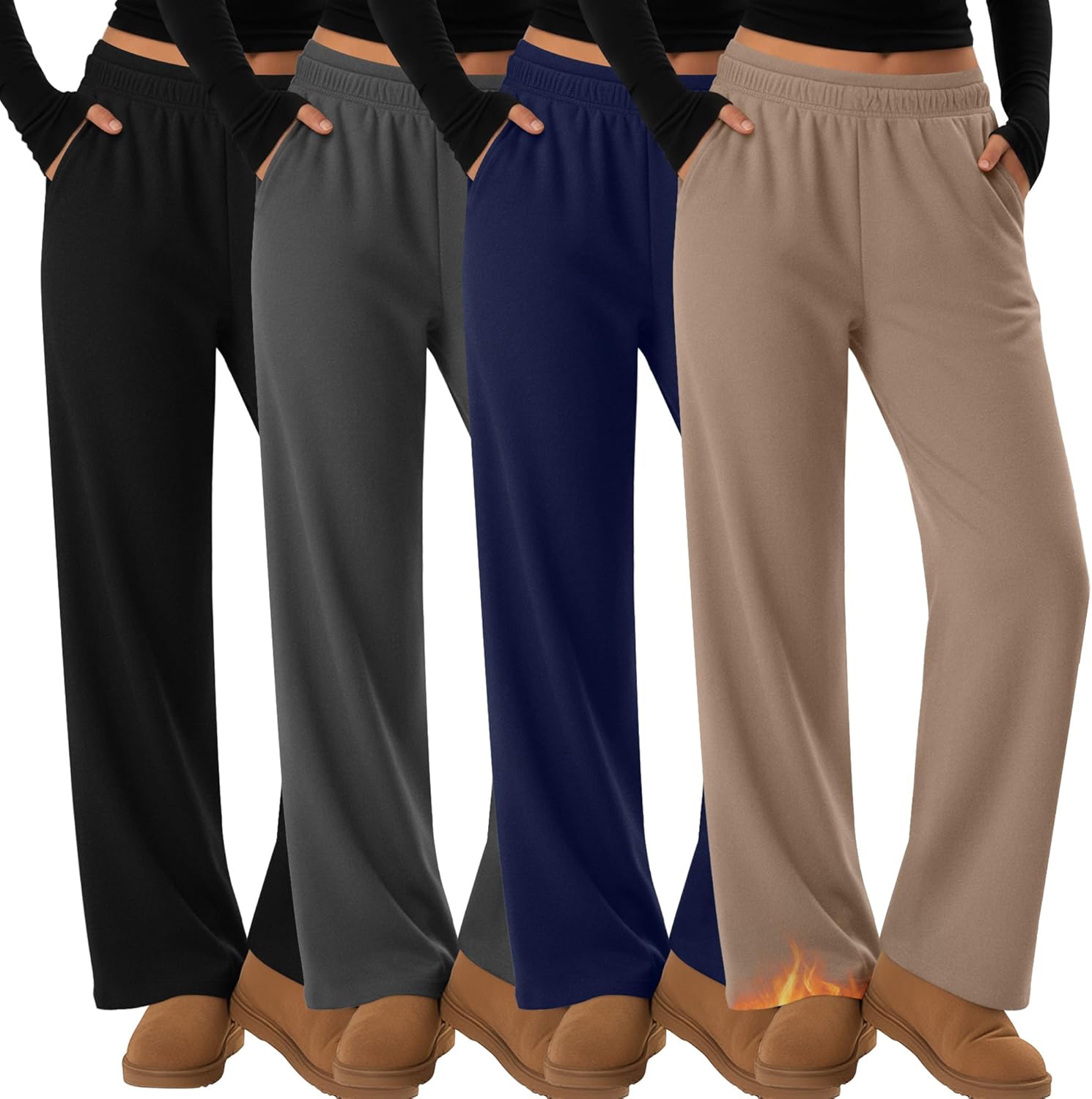 4 Pack Womens Fleece Lined Sweatpants Thermal Straight Leg Baggy Pants Wide Leg Warm Lounge Joggers with Pockets