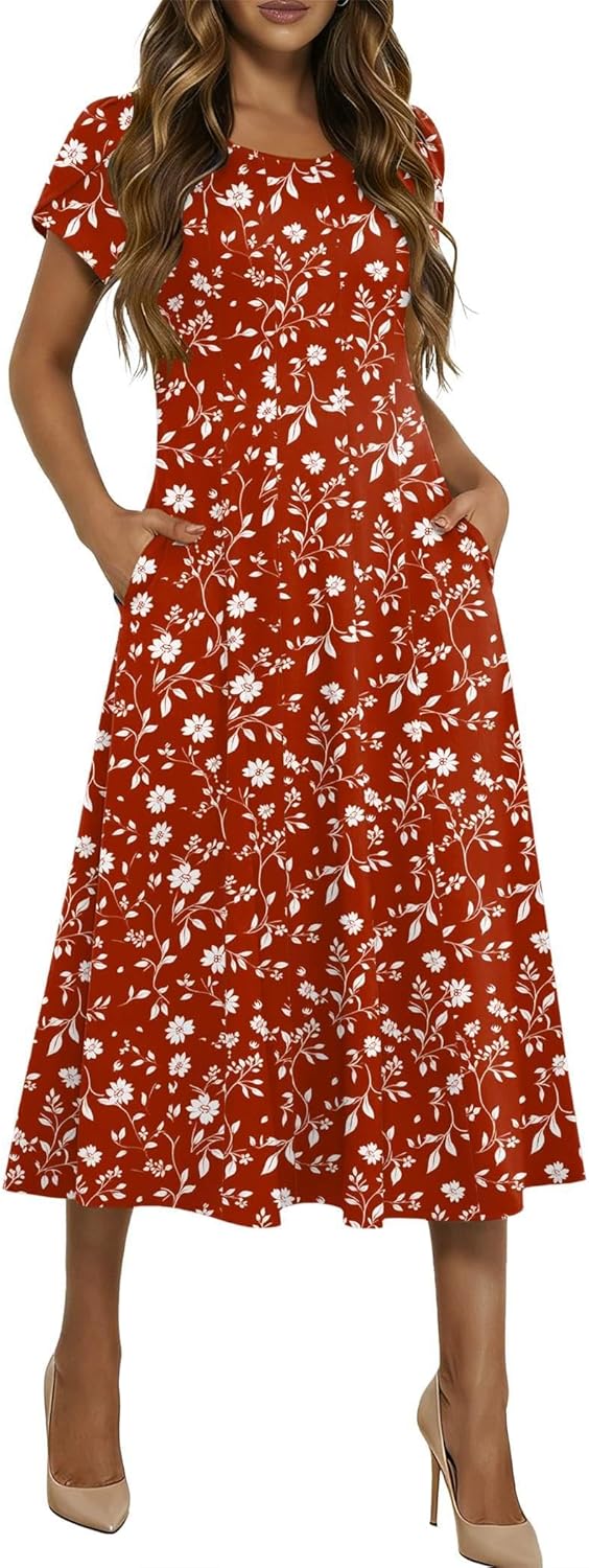 HOTOUCH Summer Dresses for Women 2026 Casual Midi Dress Petal Short Sleeve A Line Dress Pleated Flare Sundress