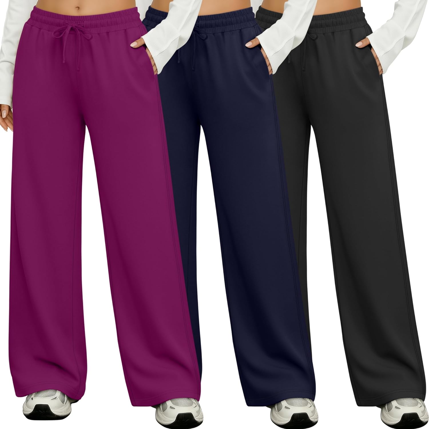 3 Pack Lounge Pants Women Wide Leg Baggy Sweatpants Casual Loose Drawstring Elastic Waist Yoga Pants with Pockets