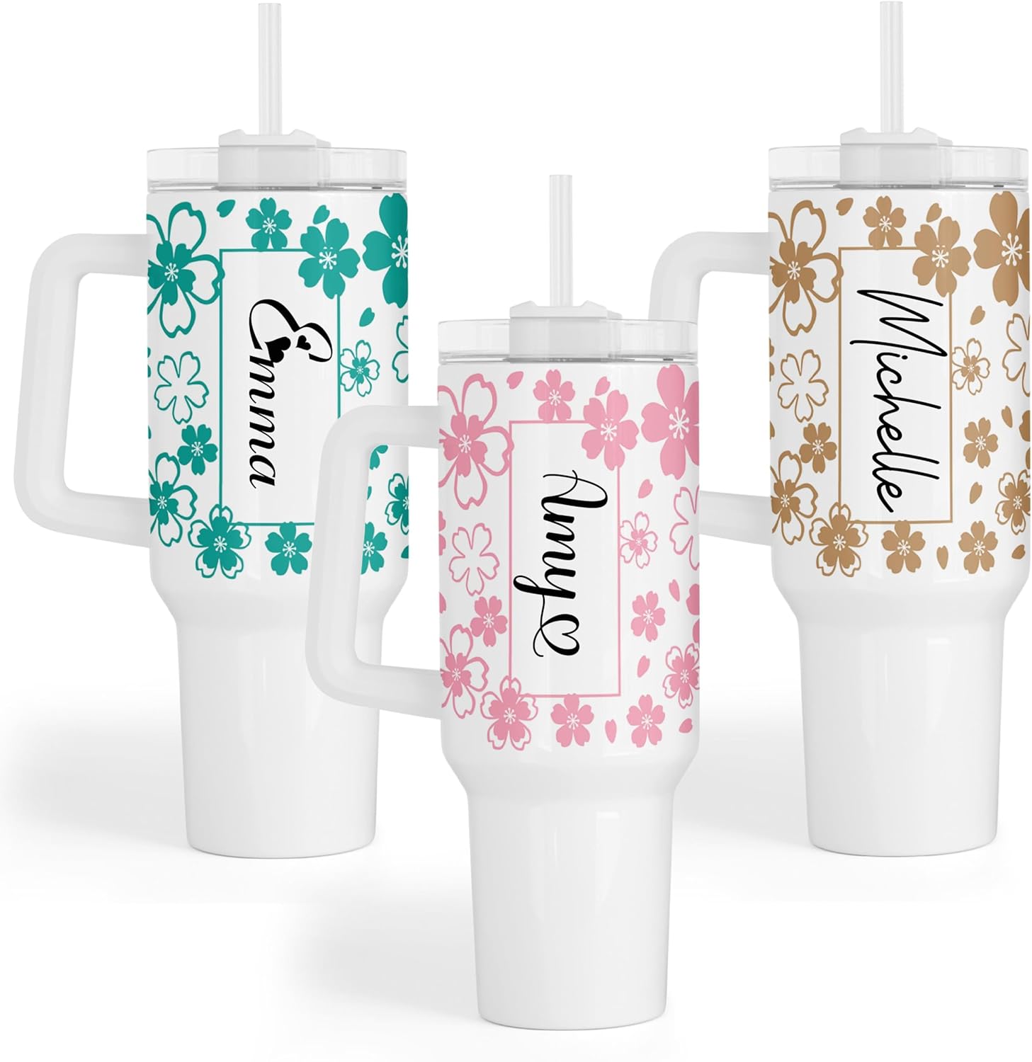 - 40oz Tumbler with handle - Comes personalized with your choice of name or text
