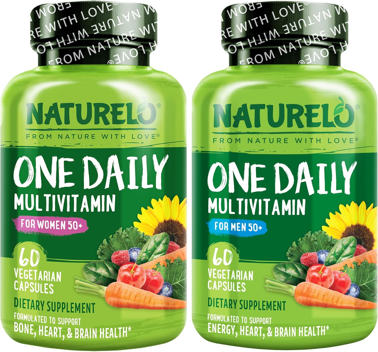NATURELO One Daily Multivitamin for Men 50+, 60 Capsules and One Daily Multivitamin for Women 50+ (Iron Free), 60 Capsules Bundle - 2 Month Supply