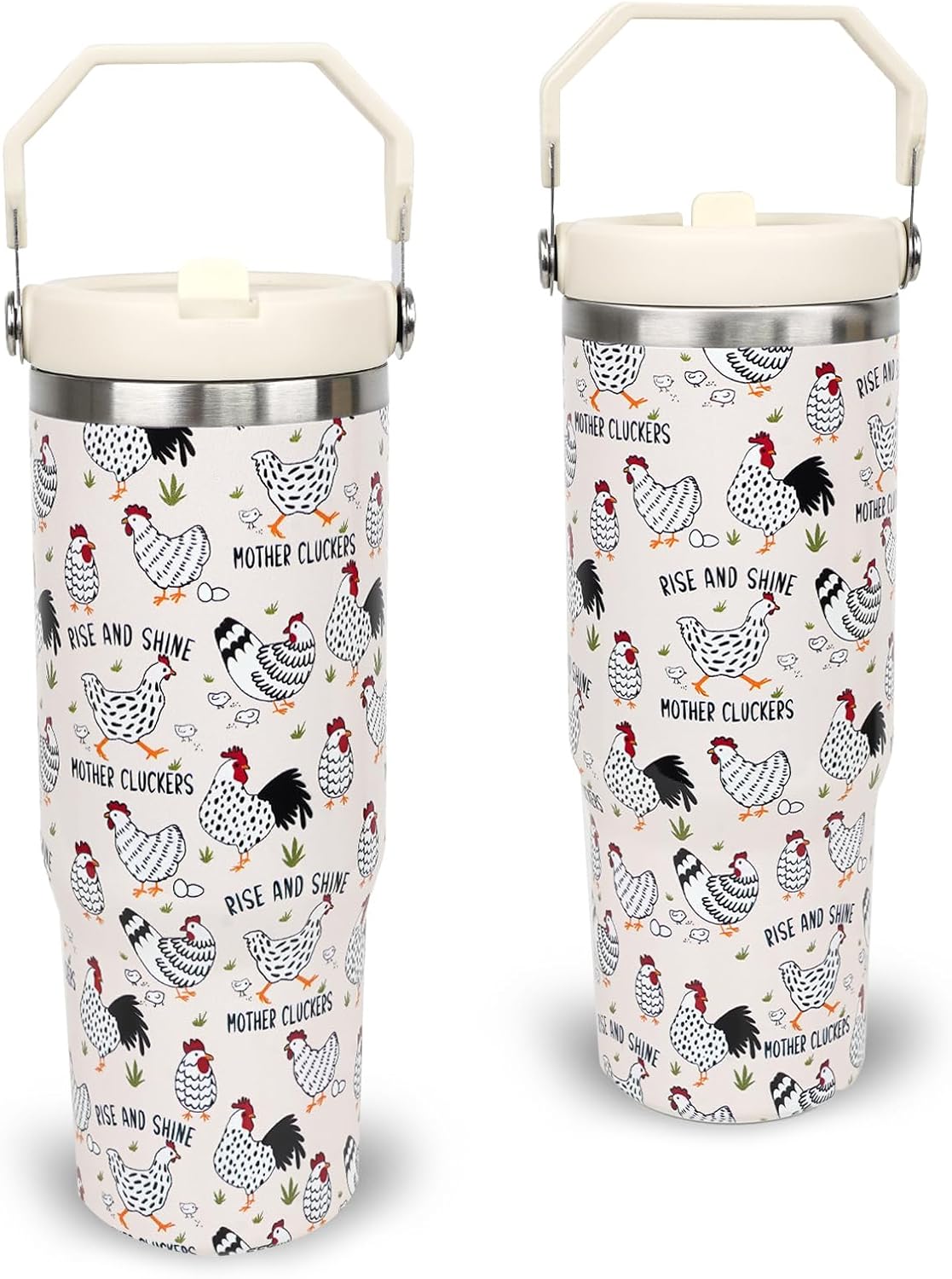- A Size for Every Need: Take 30oz tumbler with you to your favorite studio workout, on your commute, or let it be your desk companion, 30 oz tumbler can be used at home office, family and outdoor parties,beach,camping,swimming pool,and driving,travel and other activities. 30 oz chicken tumbler with handle is easy to carry around, the cup fits in a standard cup holder and car cup holder.