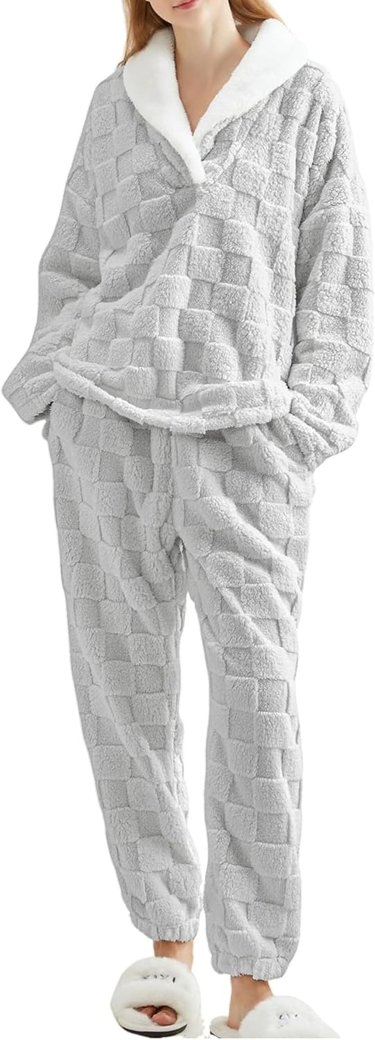 Sherpa Fleece Pajama Set for Women Thick Fuzzy 2-Piece Loungewear Cozy Winter Sleepwear & Homewear Set