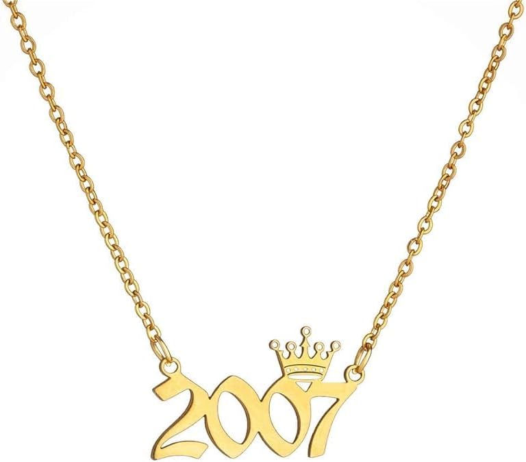 Birth Year Number with Crown Necklace,Old English, Memorable Anniversary Jewelry for Women Girls, Personalized Birthday Jewelry 18K Real Gold Stainless Steel Pendant