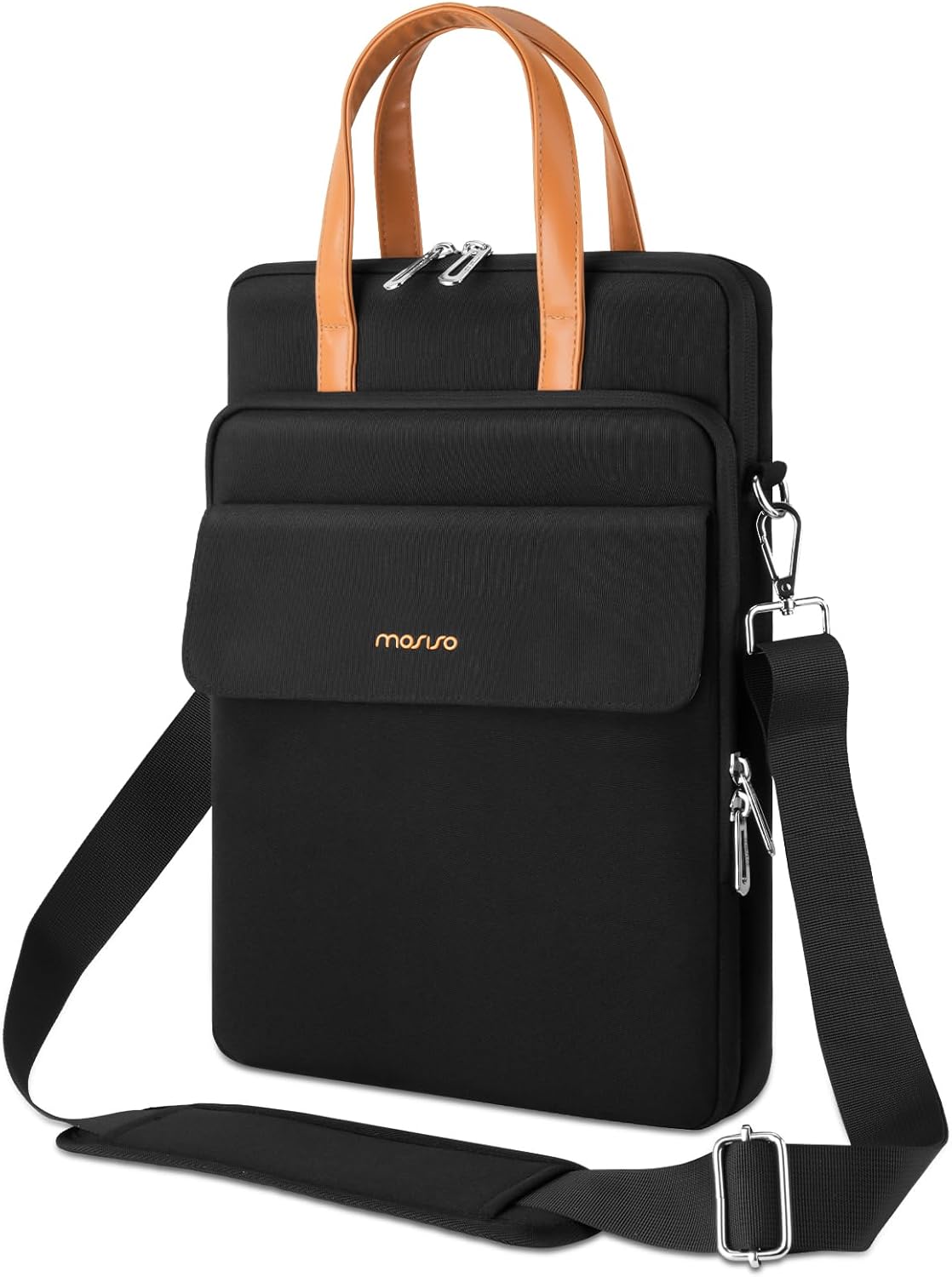 MOSISO 360 Protective Laptop Bag with Shoulder Strap, 13-13.3 inch Computer Bags Compatible with MacBook, HP, Del, Lenovo, Asus Notebook, Vertical Laptop Shoulder Bag with 3 Pockets & Belt, Black