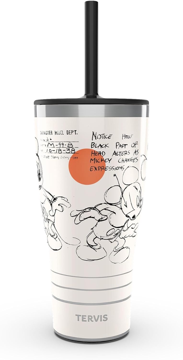 Tervis Traveler Disney Mickey Mouse Melody Triple Walled Insulated Tumbler Travel Cup Keeps Drinks Cold & Hot, 30oz - with Straw Lid, Stainless Steel
