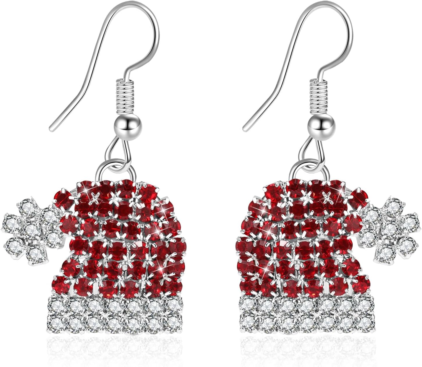 Artlunar Red White Hat Earring Holiday Party Costume Jewelry Christmas Earrings for Women (Christmas hat earring)