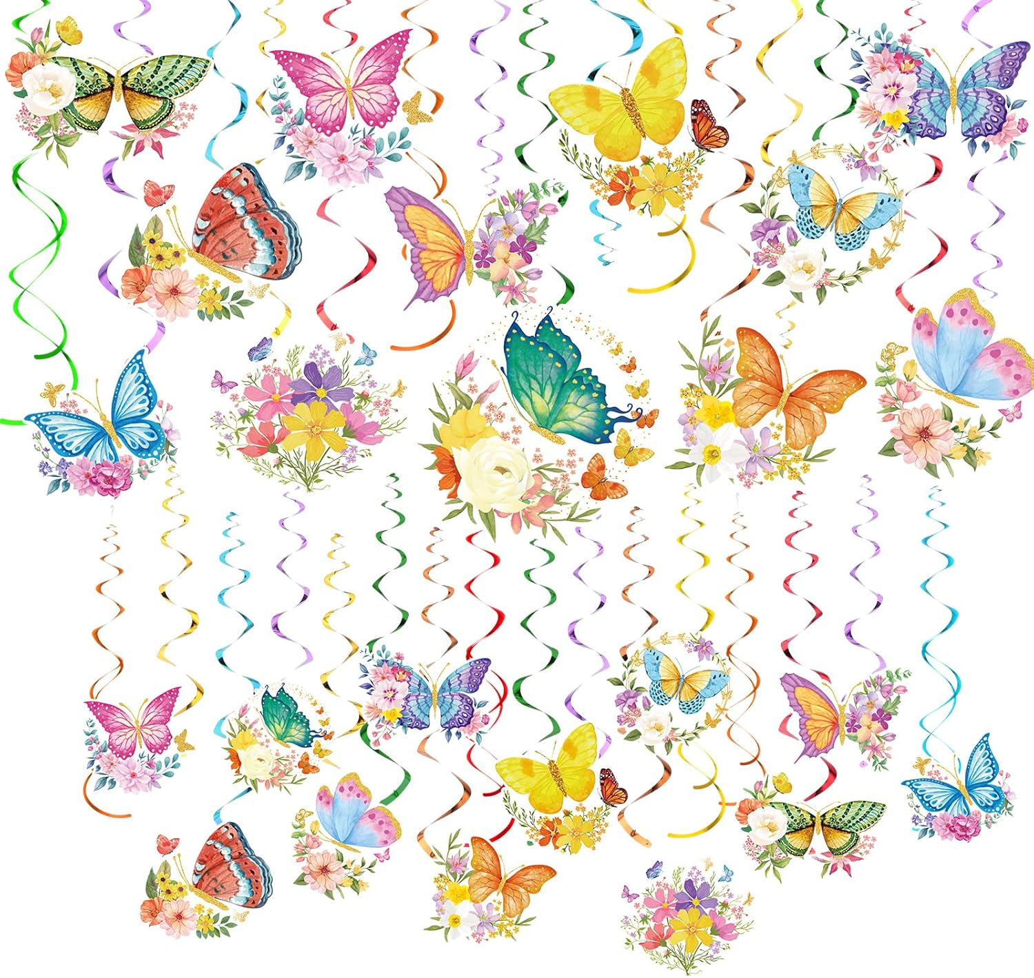 - Beautiful butterfly party design: these summer spring butterfly decorations include patterns like colorful butterfly and flower, they will add party atmosphere to your butterfly theme parties; Decorate your butterfly birthday party event with these loving butterfly hanging swirls to make a huge hit; Let family and friends have a nice time, which will make your butterfly party an unforgettable celebration