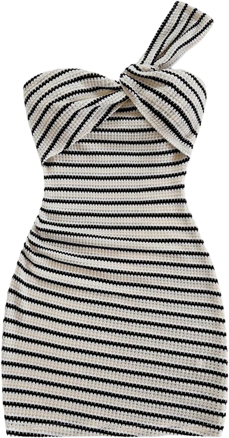 SOLY HUX Women's Striped Mini Dress One Shoulder Bodycon Knit Dresses Beach Vacation Outfits