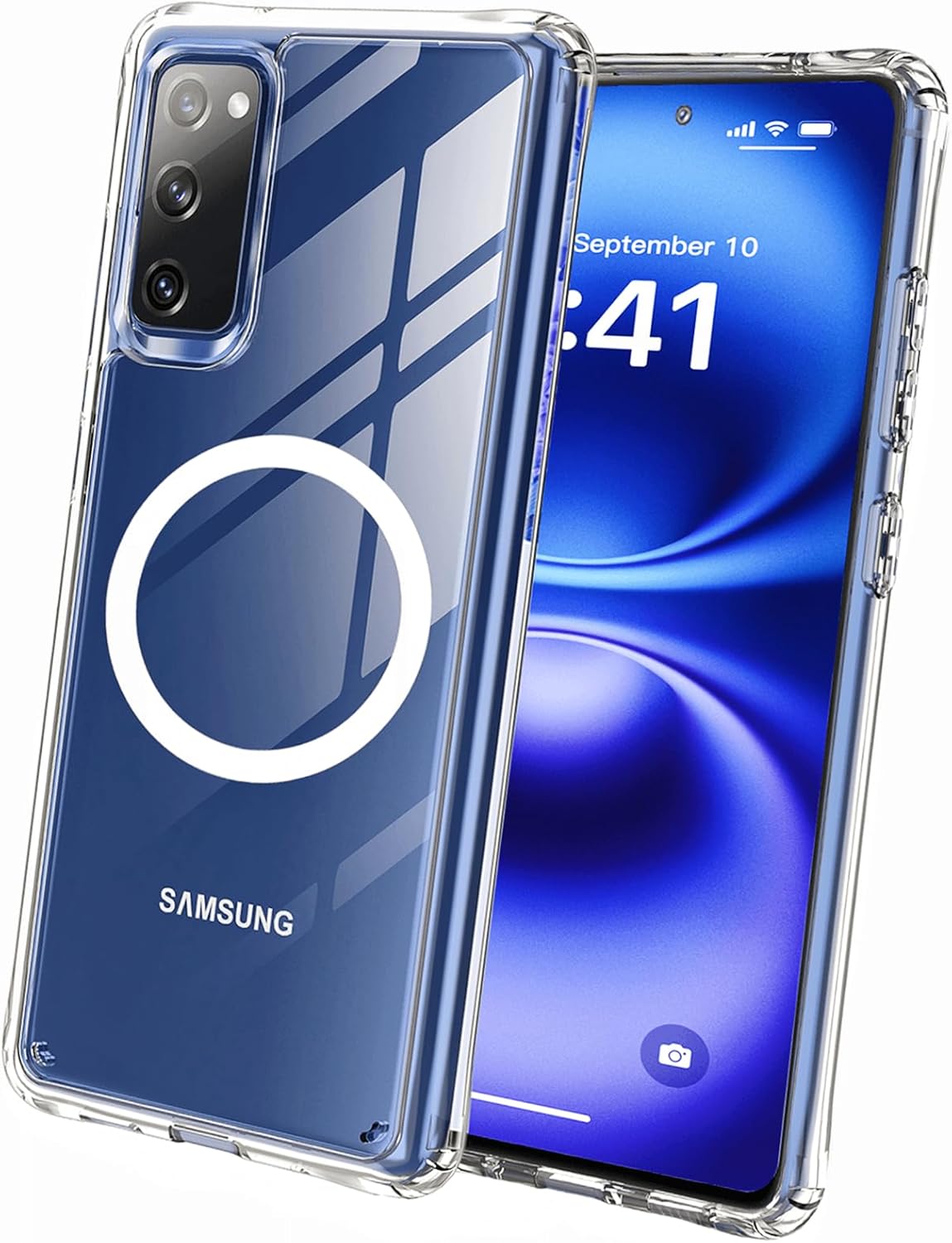 for Samsung Galaxy S20 FE 5G Clear Phone Case with Magnetic, 6.5-Inch Crystal Transparent TPU PC Cover Anti-Yellowing Shockproof Bumper Protection Slim Fit, Wireless Charging Compatible