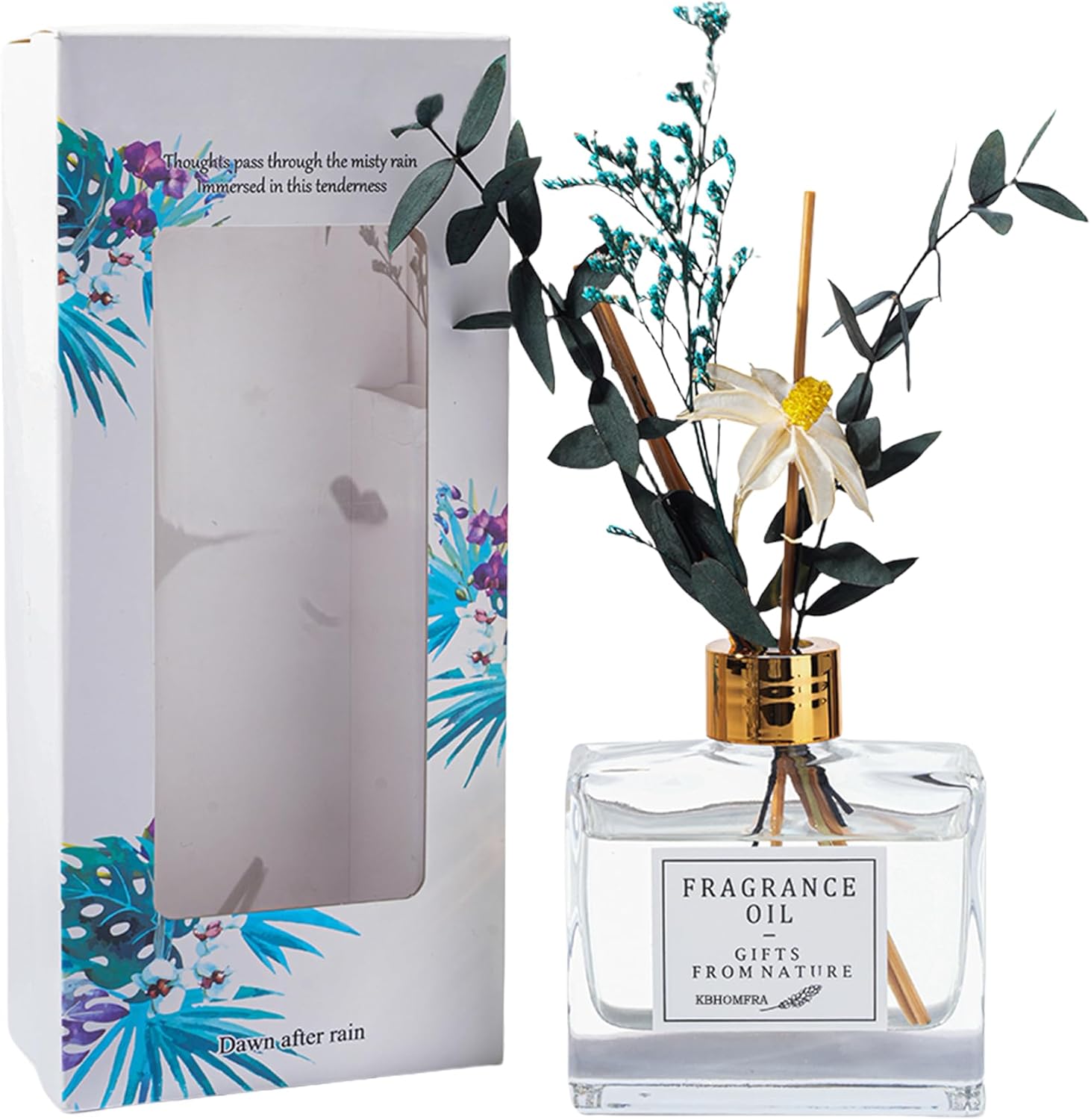 - COMPLETE SET: Includes One fragrance diffuser 4.05oz ,A bouquet of dried flowers (real flowers preserved through a special process), and Rattan sticks. In addition, free send 5pcs/pack diffuser sticks. Enjoy lasting fragrance for 30-50 days