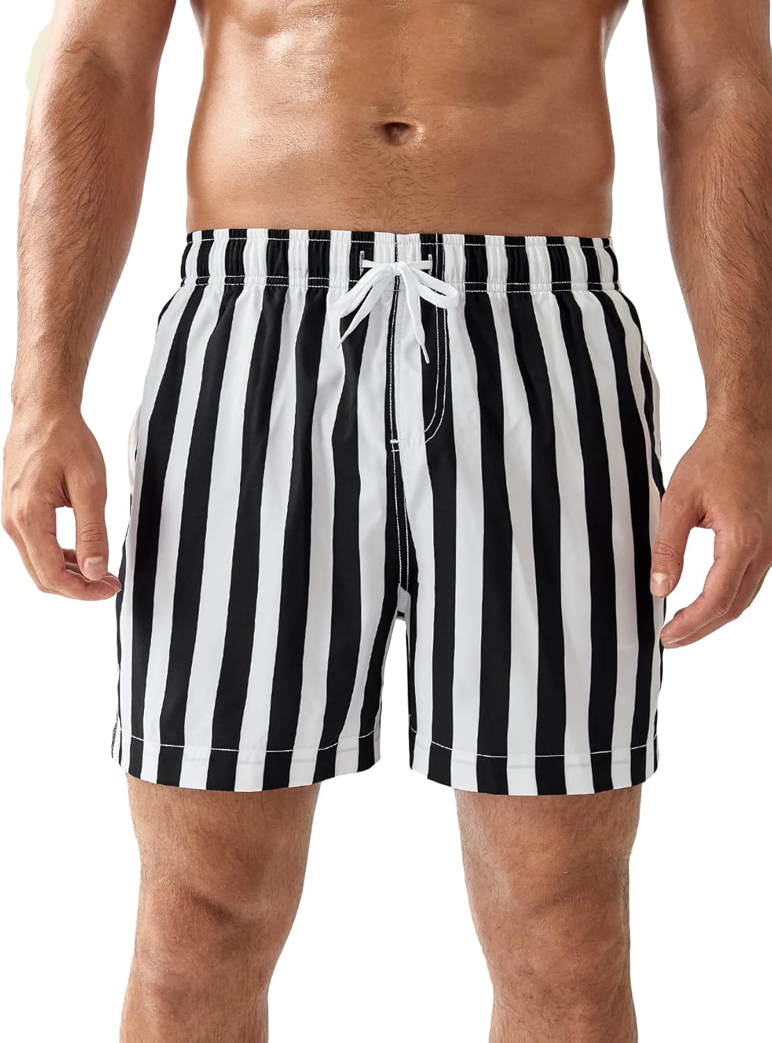OYOANGLE Men's Striped Swim Trunks Quick Dry Beach Board Shorts Swimwear