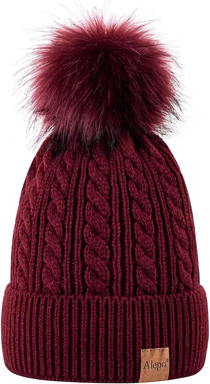 Alepo Womens Winter Beanie Hat, Warm Fleece Lined Knitted Soft Ski Cuff Cap with Pom Pom