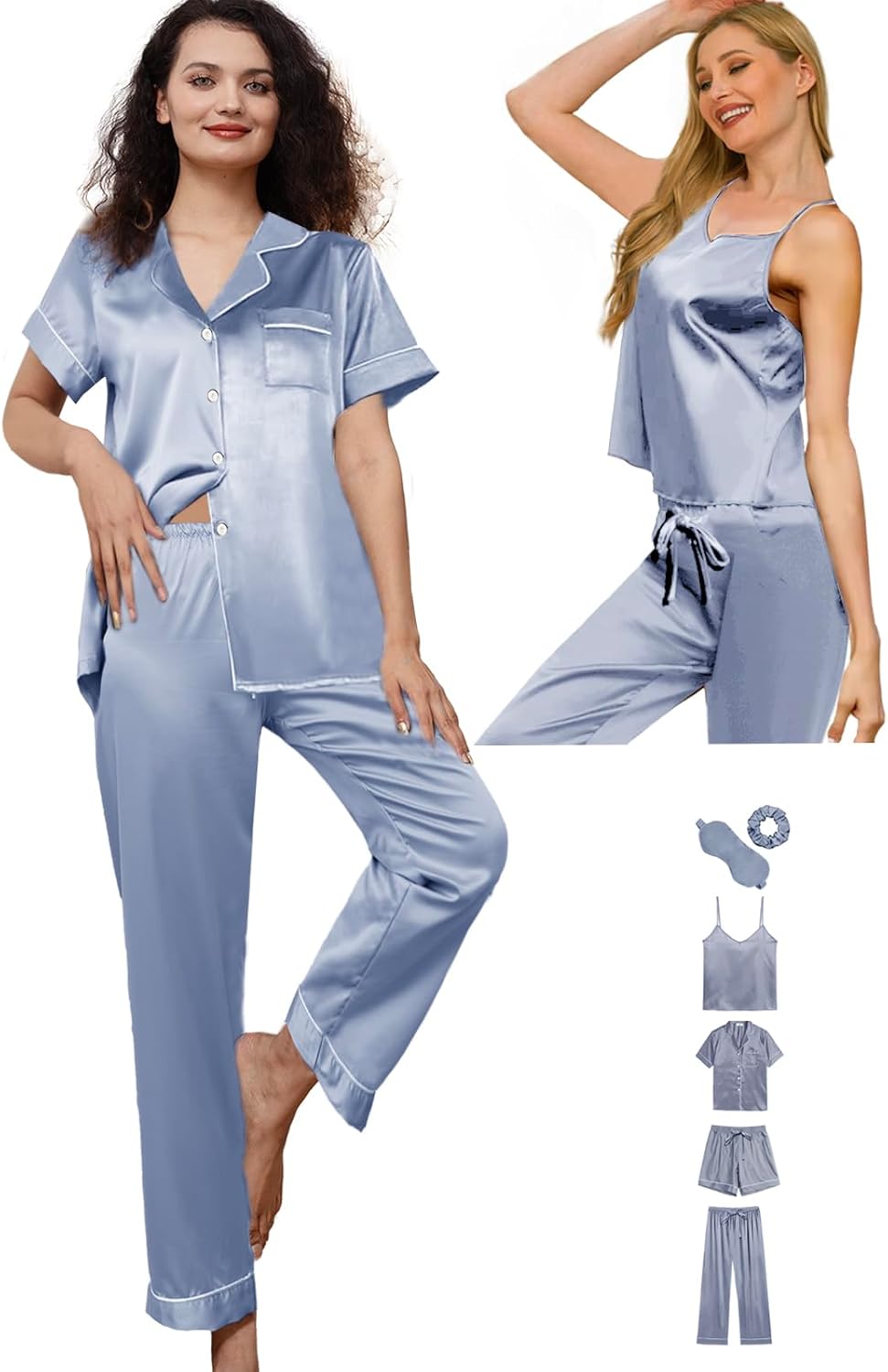 6Pcs Womens Silk Satin Pajama Sets Pj Sets Short Pjs Set Pajamas Sleepwear Camisole Sexy Cami
