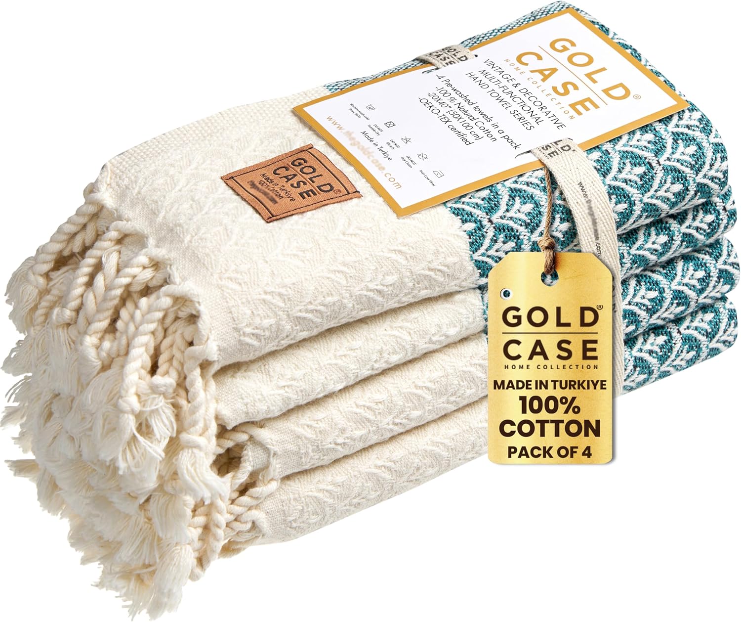 GOLD CASE Turkish Hand Towels for Bathroom Set of 4 – 100% Cotton Bathroom Towels – Helen Kitchen Small Towel for Spa, Face, Tea & Dishcloth – Decorative Patterned Weave – Teal