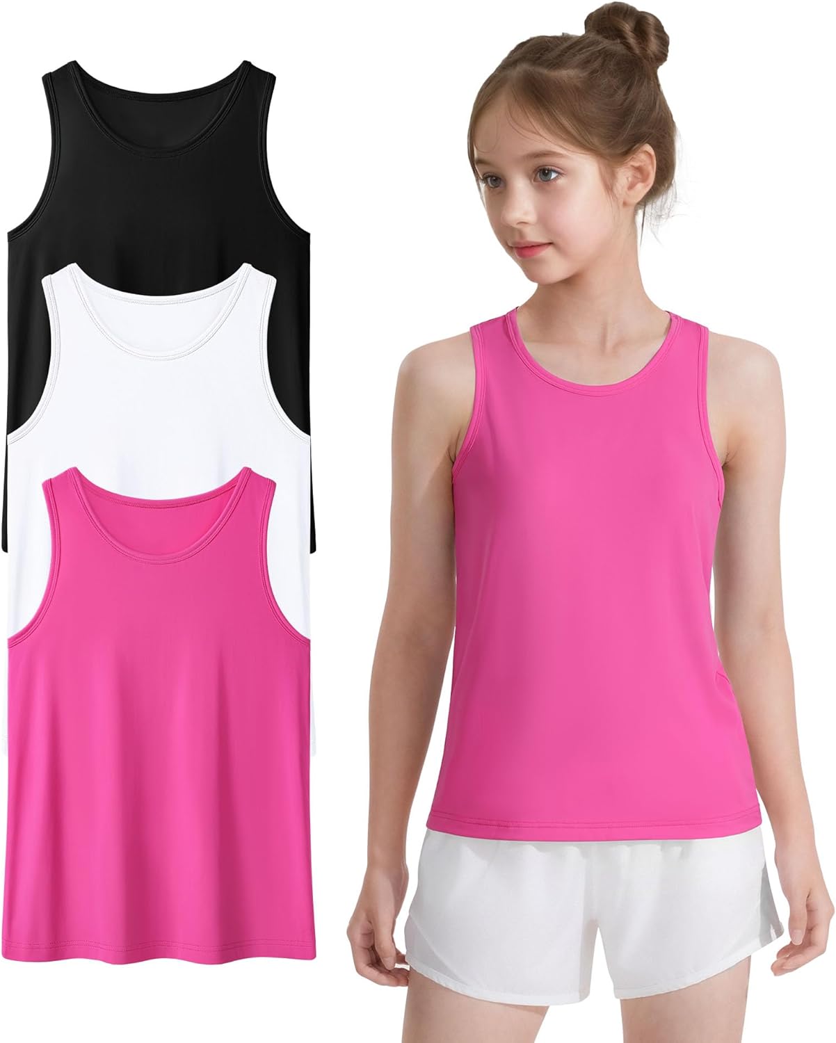 Auranso Girls Athletic Tank Tops 3 Pack UPF 50+ Racerback Sleeveless Quick Dry Sports Dance Workout Tops
