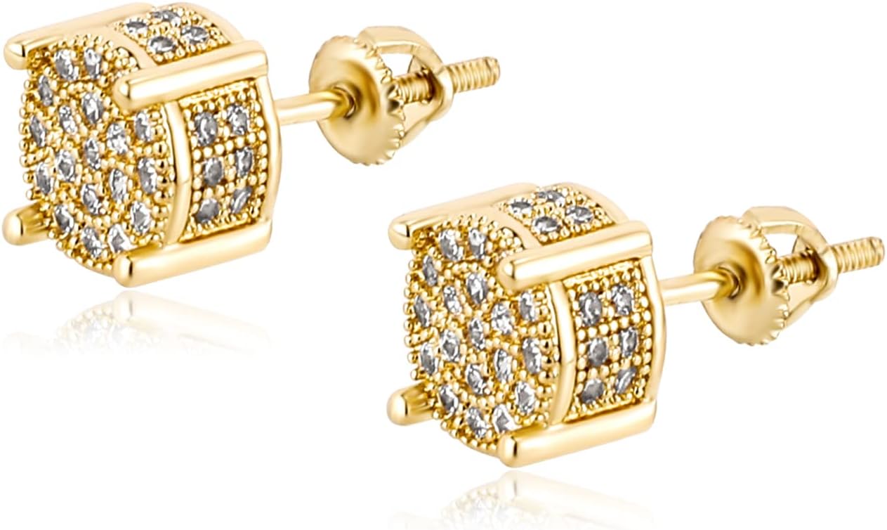 TOPGRILLZ Screw Back Earrings 14K Golden Plated 5A+ Cubic Zirconia Cluster Round Screw On Stud Earrings For Men Women Aretes De Hombre