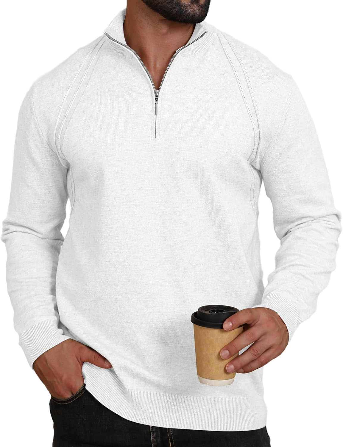 Mens Fashion Knit Pullover Sweater Quarter Zip Long Sleeve Mock Neck Ribbed Sweater