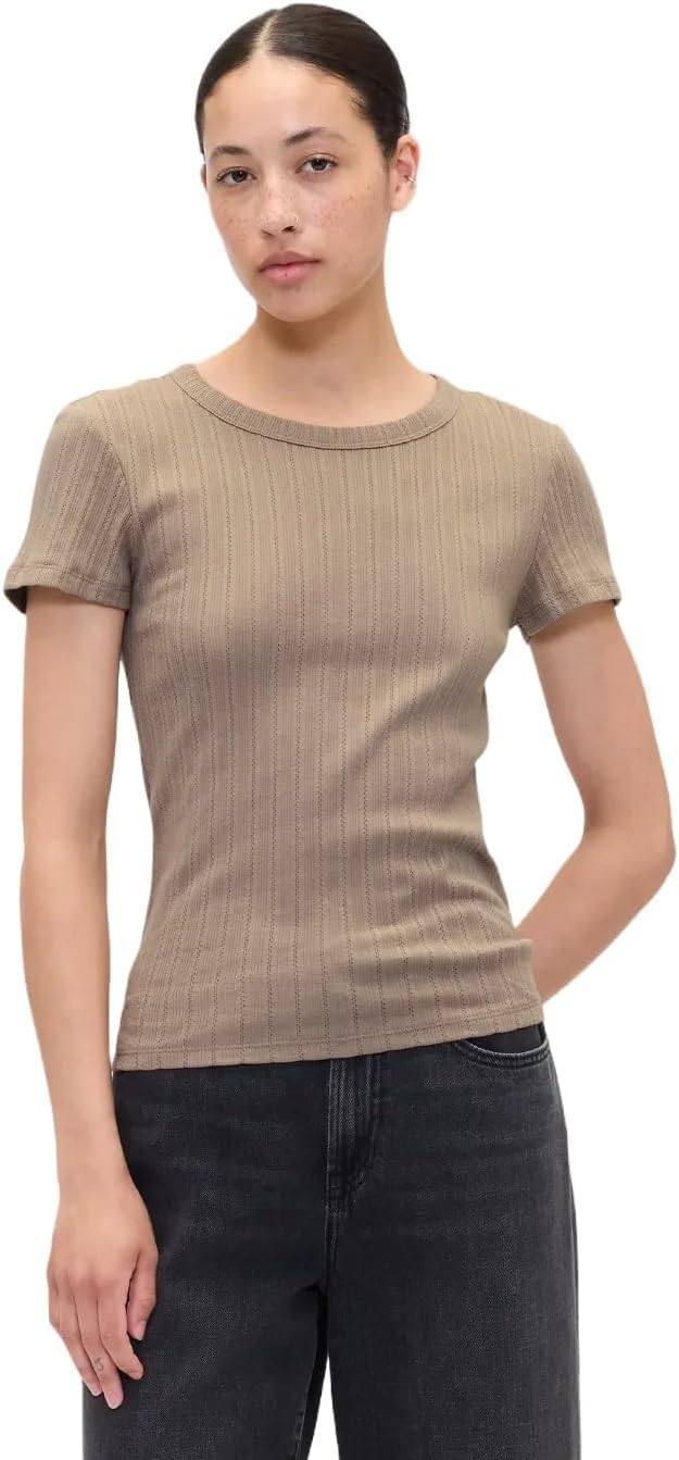 Gap Womens Short Sleeve Pointelle Ribbed Knit Top